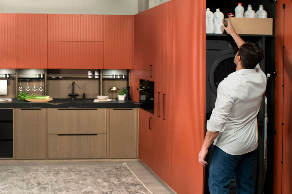 Pero es en los detalles donde demuestra su inteligencia: un armario lavadero perfectamente integrado permite ocultar la zona más práctica de la casa sin renunciar a la estética.